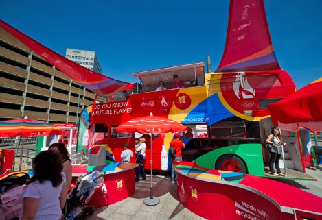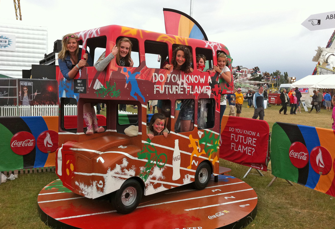 In the lead up to the Summer Olympics 2012 Coca-Cola commissioned us to design their ‘Future Flames’ tour, a nationwide experiential activation encouraging people to nominate their ‘Future Flame’. A 1966 Routemaster bus was branded and renovated with a sampling bar to the bottom deck and a VIP area with open air DJ booth to the upper deck. When visiting the tour participants could not only sample Coca-Cola products, but could view Olympic torches from previous years and could even have their picture taken holding the London 2012 torch.