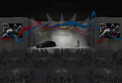 This concept conference design takes the ribbon motif from the client’s potential brand campaign and maps it within the space. The ribbons were to run throughout the event space, culminating in the conference hall where acrobats would perform aerial silk routines using some of the special ribbons.