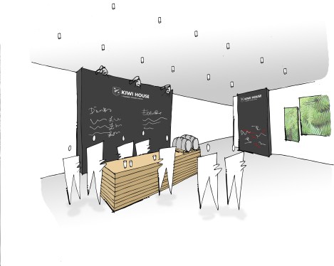For the duration of the 2012 London Olympics Kiwi House resided at the Central Saint Martins campus in Kings Cross. Having been given quite an open brief, I came up with the concept of a recycled, eco haven to reflect New Zealand’s green reputation. The main feature of the design is the Kiwi food garden out front including a BBQ curated by Peter Gordon (esteemed Kiwi chef), native New Zealand plants and specially designed crate seating.