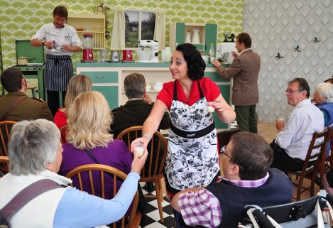 Following on from the previous years of the Kenwood Food Theatre we revisited the 1950s and 1970s. The revolving kitchens returned, both carefully dressed to create authentic tastes of the eras involved. Demonstrations were given by Kenwood’s chefs, showing off their new products using vintage recipes. Along with the staging area, the timeline wall was revamped. Showcasing the best of British throughout the last year, the wall included images of the Queen’s Jubilee and our Olympic champions.